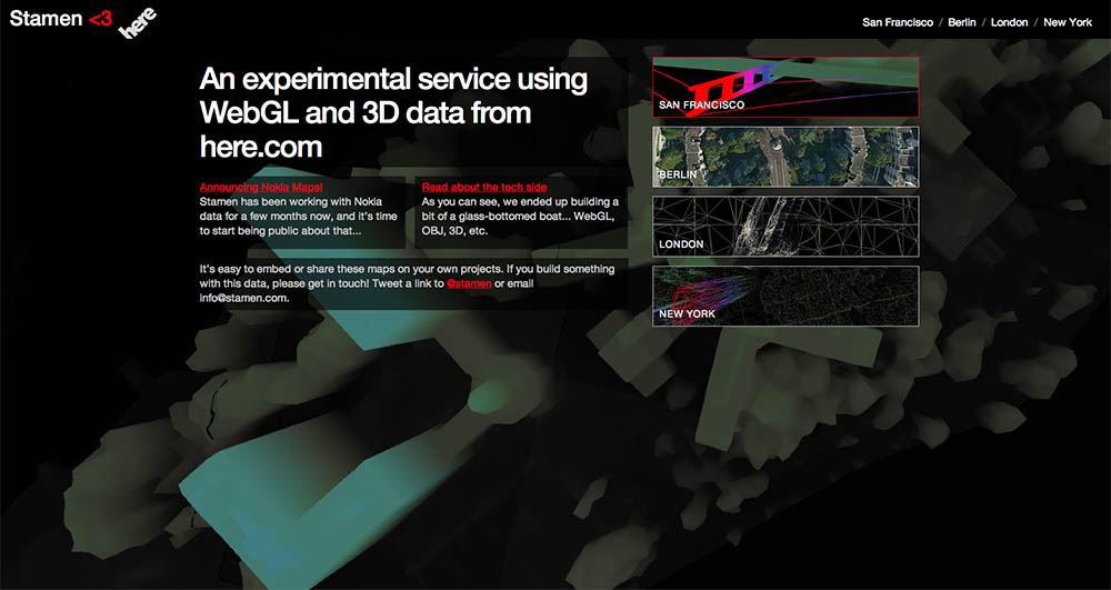 This is a selection of projects that I’ve worked on in a variety of capacities, most recently in my current role as a front end design lead for the U.S. government at 18F, and as Design Director at Stamen from 2005 to 2013.